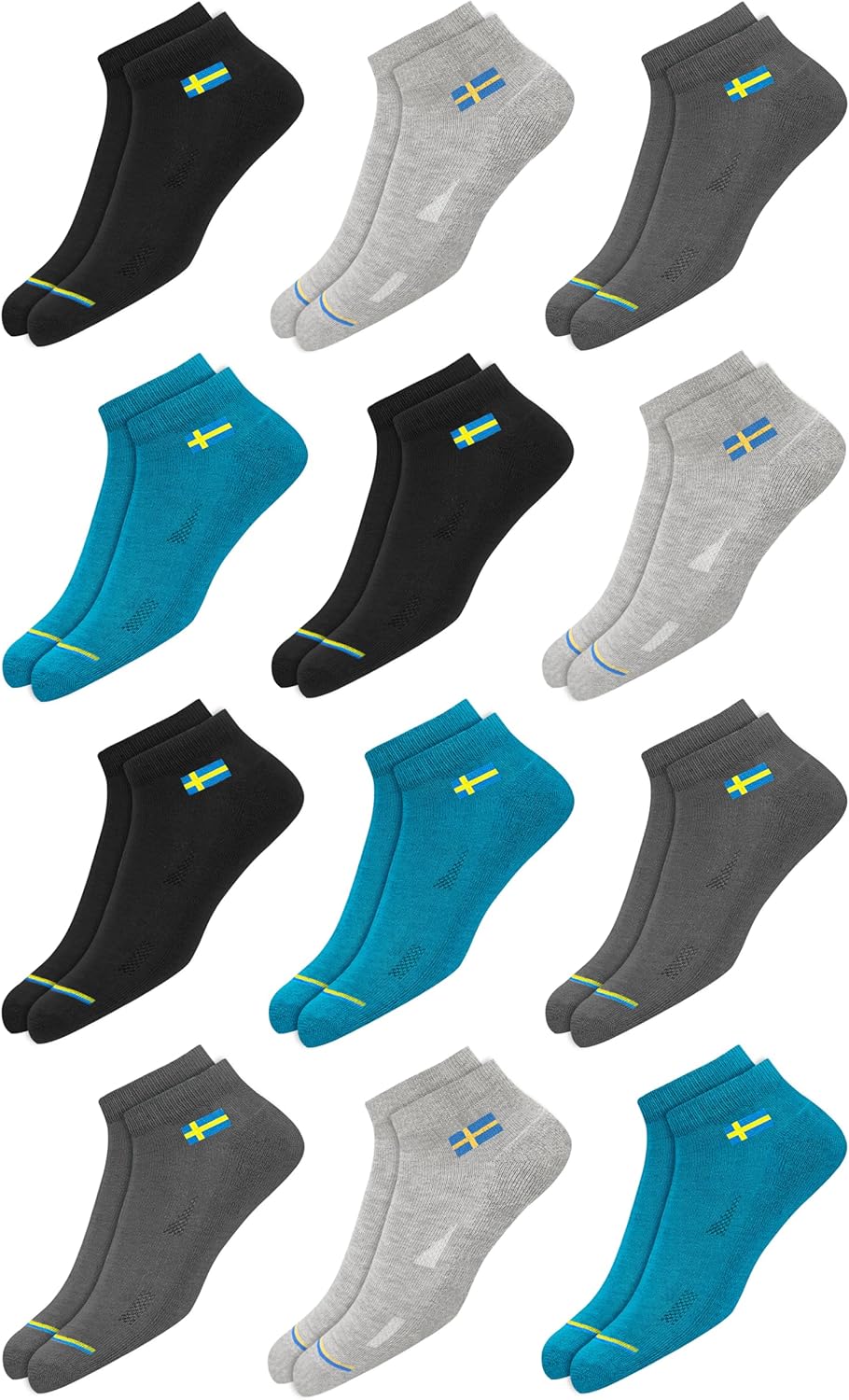 SWAGR 12 Pairs Solid Cotton Ankle Length Socks for Men Women, Pack of 12., Assorted